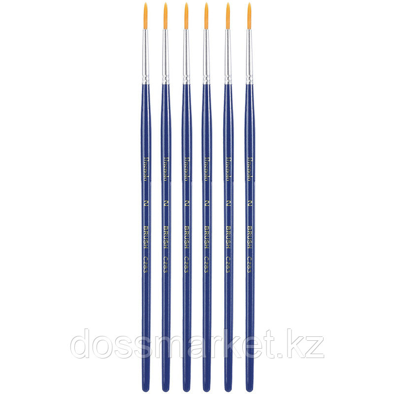 Набор кистей DELI "Finenolo", №2, круглая, березовая ручка 20 см, 6 штуки в уп., синтетика