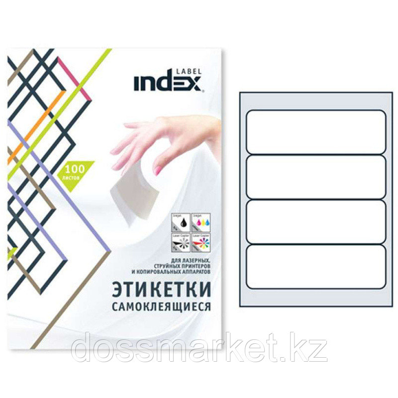 Этикетки самоклеящиеся INDEX Label, А4, 190 х 61 мм., 4 шт/лист, 100 л.